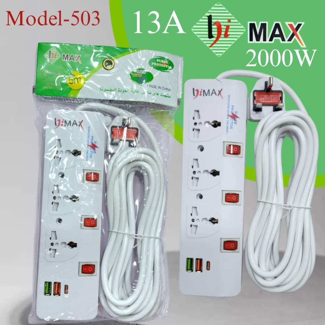 تواصيل كهرباء هاي ماكس الاصلي ➖منفذ PD➖منفذين USB ➖ 3 فتحات ➖ 5 متر .